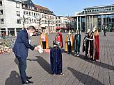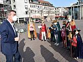Wie jedes Jahr besuchten die Sternsinger von Mariae Namen und der italienischen Mission den Hanauer Oberbürgermeister. Bedingt durch den Lockdown fand der Besuch diesmal nicht vor dem Büro des OB, sondern im Freien vor dem Brüder-Grimm-Denkmal statt. Mit Ende Februar war es sicherlich auch der späteste aller bisherigen Segensbesuche. Doch dafür war es vielleicht auch so frühlingshaft warm, wie noch nie.