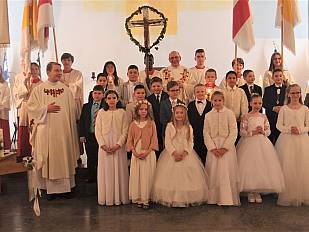 Heute am Weißen Sonntag startete die Feier der Erstkommunion in Mariae Namen und St. Laurentius. Untenstehend ein Bild aus der heiligen Messe in Mariae Namen und ein Gruppenfoto der Mädchen und Jungen, die zum ersten Mal am heiligen Mahl teilgenommen haben. Wir wünschen den Kommunionkindern und ihren Familien zu diesem besonderen Tag Gottes Segen und dass sie immer wieder spüren, das Jesus als ihr Bruder und Freund an ihrer Seite ist.